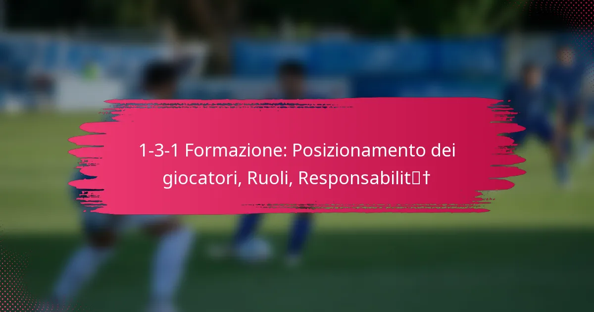 La formazione 1-3-1 è un’organizzazione strategica dei giocatori che consiste in un portiere, tre difensori, un centrocampista e un attaccante. Questa formazione è progettata per fornire stabilità difensiva mentre facilita transizioni efficaci tra attacco e difesa. Il ruolo di ciascun giocatore è essenziale per mantenere l’equilibrio e garantire una collaborazione fluida sul campo.