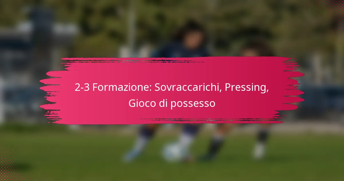 La formazione 2-3 nel calcio è un assetto tattico caratterizzato da due difensori e tre centrocampisti, progettato per creare sovraccarichi a centrocampo e supportare sia il pressing che il gioco di possesso. Questa formazione enfatizza il controllo del pallone e le transizioni rapide, rendendola efficace per le squadre che danno priorità alle strategie di possesso e di alta pressione.