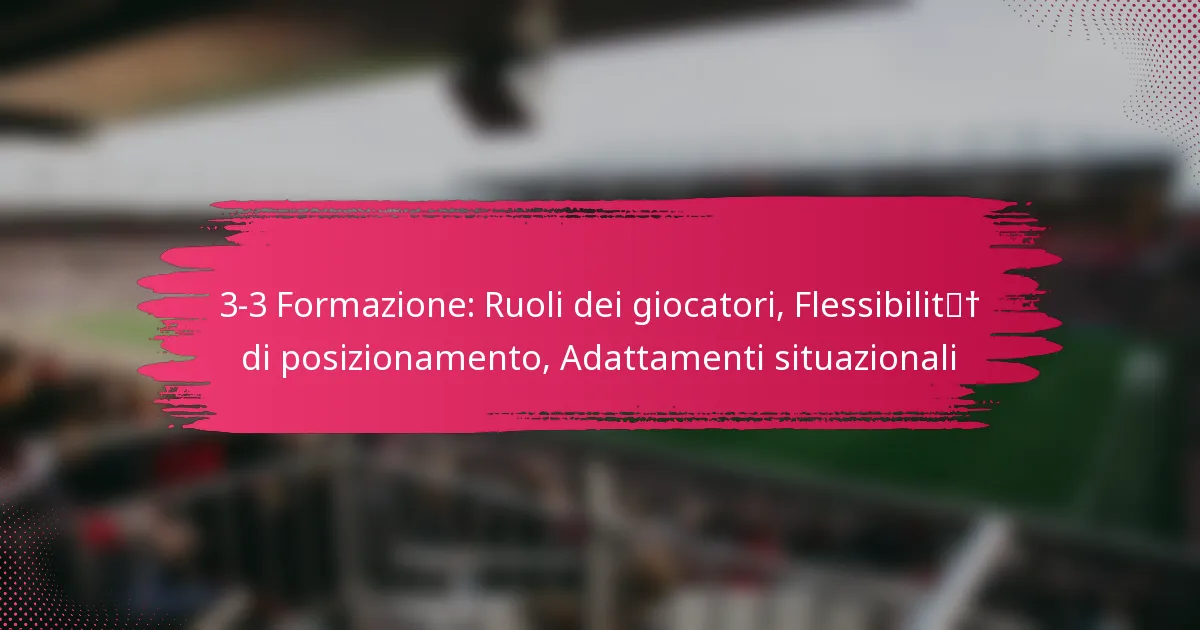 La formazione 3-3 prevede tre difensori, tre centrocampisti e tre attaccanti, ognuno con ruoli distinti che contribuiscono alla strategia complessiva della squadra. Questa formazione consente una flessibilità di posizionamento, permettendo ai giocatori di adattarsi dinamicamente durante una partita per rispondere a varie situazioni di gioco. Aggiustamenti situazionali efficaci basati sul contesto della partita sono cruciali per migliorare sia le capacità offensive che difensive, garantendo che la squadra rimanga competitiva per tutta la durata del match.